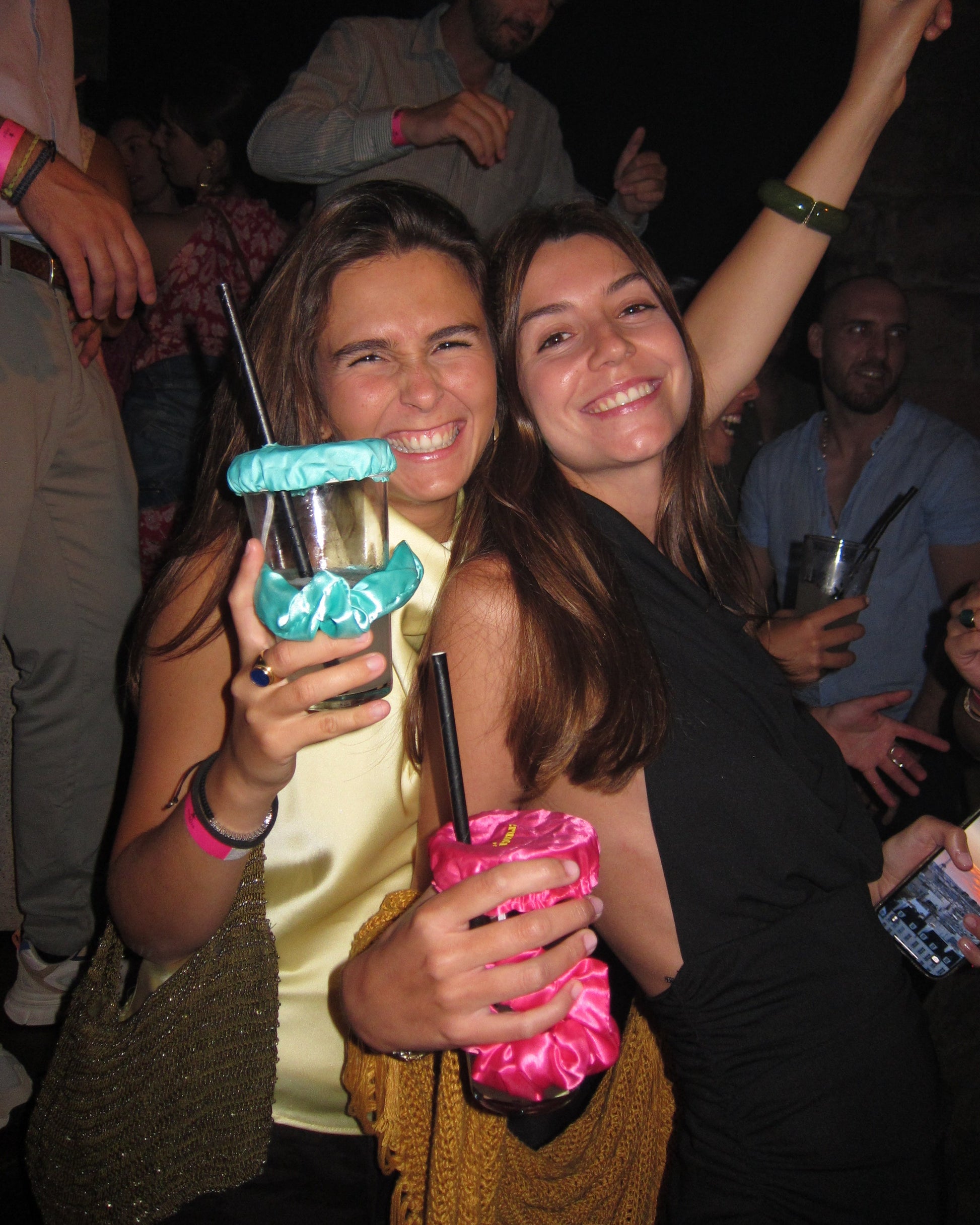 The Hot Pink Cruncci is a satin scrunchie designed to fit over most cups and glasses, blocking toxic substances from being dropped into your drink.
